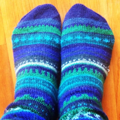 Das erinnert mich nachdrücklich daran, dass es jetzt an der Zeit wäre, die vor einiger Zeit gekaufte Sockenwolle in Socken für mich und Sohnemann zu verwandeln. Wo ist denn gleich das Nadelspiel hin….?