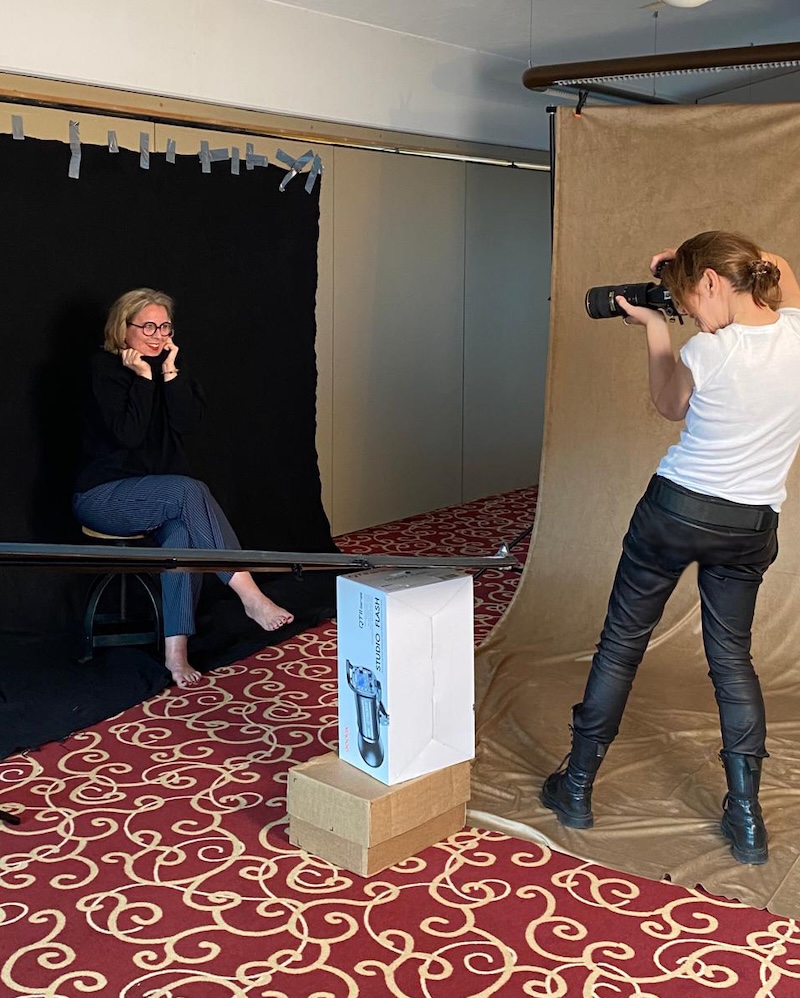 „Der Workshop hat viel Spaß gemacht, weil Susanne und Martina von Anfang an eine entspannte, zugewandte Atmosphäre erschaffen haben, in der man sich wertgeschätzt und sicher fühlen konnte. Für Fotos zu posieren, während andere dabei zusehen, ist ja – besonders für eher Introvertierte – nicht ganz einfach. Aber unter Musikbespielung, anfeuernden Kommentaren und bewaffnet mit einer foto-fördernden, aber doch auch natürlich wirkenden Profi-Maquillage ließ sich die Herausforderung gut bewältigen. Und die Fotos, die dabei herauskamen, waren wirklich, obwohl kaum retuschiert, schön und ausdrucksstark. Die richtige Pose, das richtige Licht, den Wind vom Fön, das wohlmeinende Auge der Fotografin, die entspannte Atmosphäre – all das braucht es wohl, um gute Bilder zu bekommen. Ich kann den Workshop nur empfehlen!“ (Nessa A.)