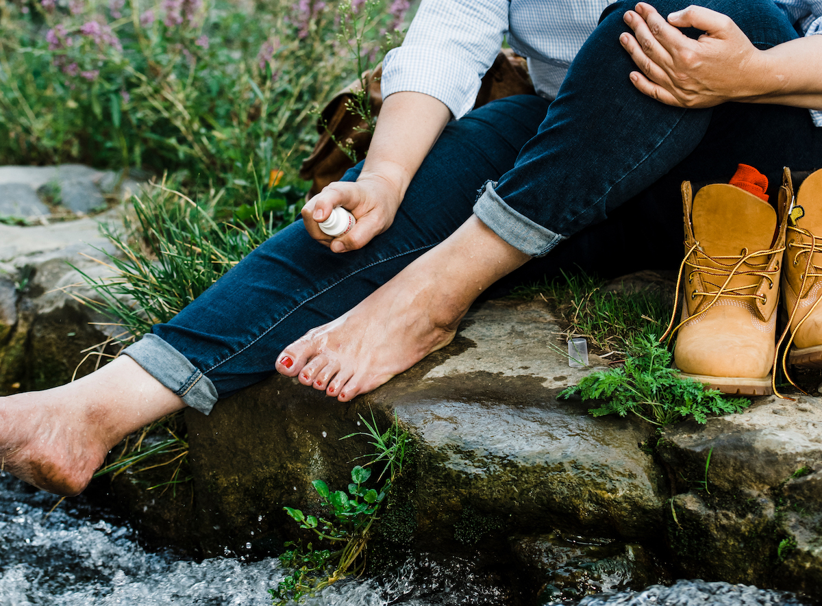 Emcur Fusspilz Schutzspray schützt nicht nur gegen Infektionen, sonders auch vor Druckstellen. Und er erfrischt. Fast so gut wie ein Gebirgsbach … :-)