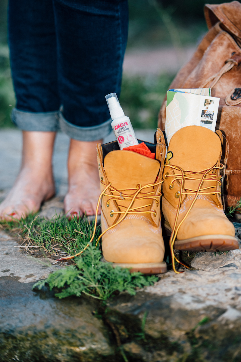 4. Fürs richtige Klima sorgen: Bei Schuhen achte ich immer auf atmungsaktive, hochwertige Materialien und trage lieber klassisches als „veganes“ Leder. Wer lange und viel in geschlossenen Schuhen unterwegs sein muss, dem möchte ich außerdem noch Emcur Fußpilz Schutzspray empfehlen. Dieser Spray wirkt präventiv gegen ein unangenehmes und leider auch tabuisiertes Thema: Fußpilz. Ich hatte das Spray in Georgien dabei und habe mir die Füße morgens damit eingesprüht, bevor ich in meine Schuhe geschlüpft bin, und abends beim Ausziehen ebenfalls. Das hatte gleich mehrere Vorteile: Die Inhaltsstoffe pflegen die Haut, erfrischen und kühlen sie – und sie beugen einer Infektion mit Fußpilz und einer Infektionsausbreitung bei Nagelpilz vor. Die Anwendung ist denkbar einfach und unkompliziert. Morgens und abends aufsprühen, zwischen den Zehen verteilen und sich gut geschützt wissen.