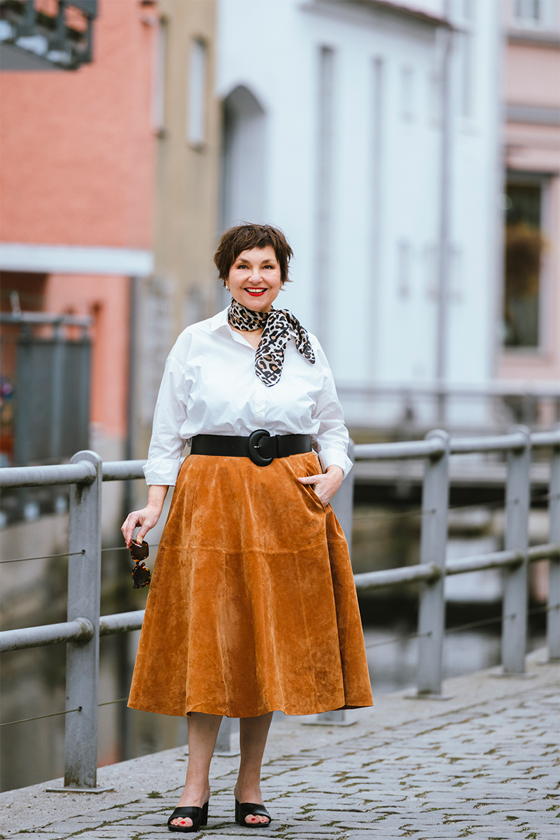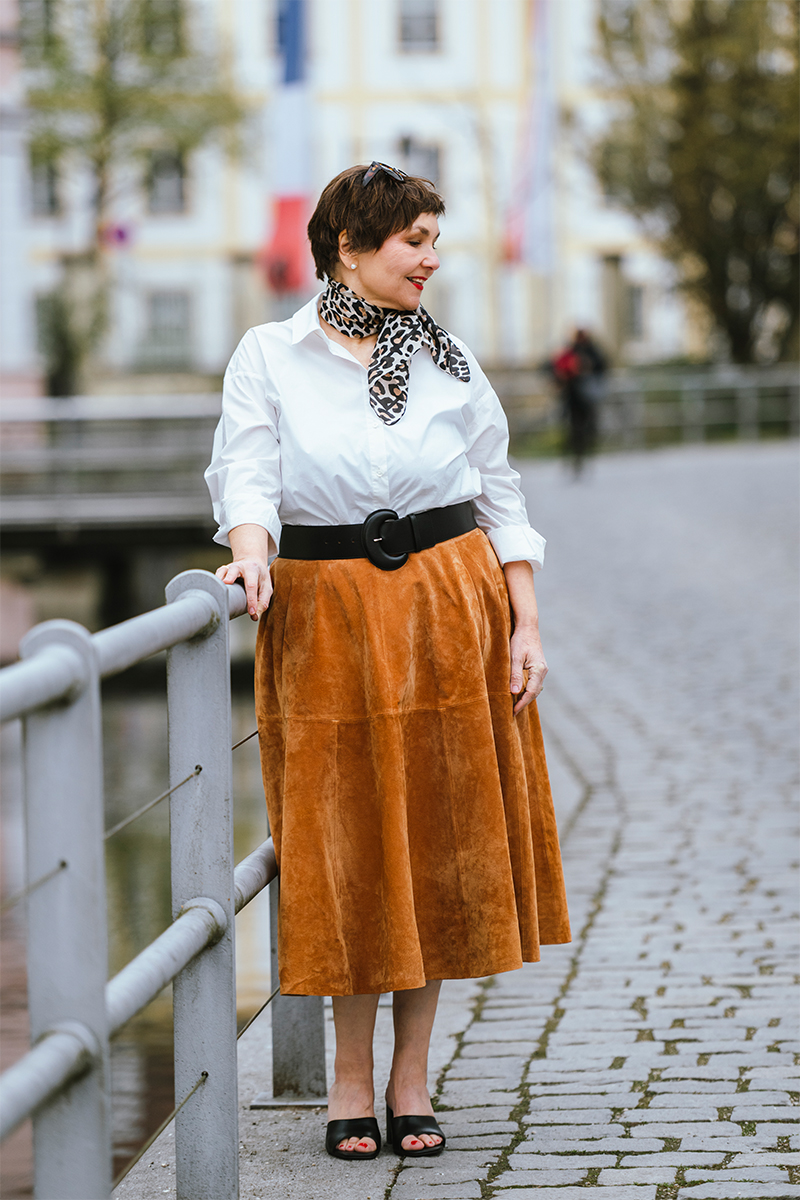 Tatsächlich bin ich mit meinen Überlegungen zu diesem Thema noch nicht fertig. Aber so viel ist sicher: Ich trage Röcke nicht um weiblicher zu wirken, sondern ich trage sie, weil ich weiblich bin. Und weil sie mir gefallen. Ich mag es, wenn das Material so luftig schwingt und meine Beine umschmeichelt. Ich mag die aufrechtere Haltung, zu der mich der Absatz geradezu zwingt. Und ja, ich mag es auch, wieder eine Taille zu sehen, die ich durch drei Schwangerschaften und die Wechseljahre schon fast verloren geglaubt hatte.