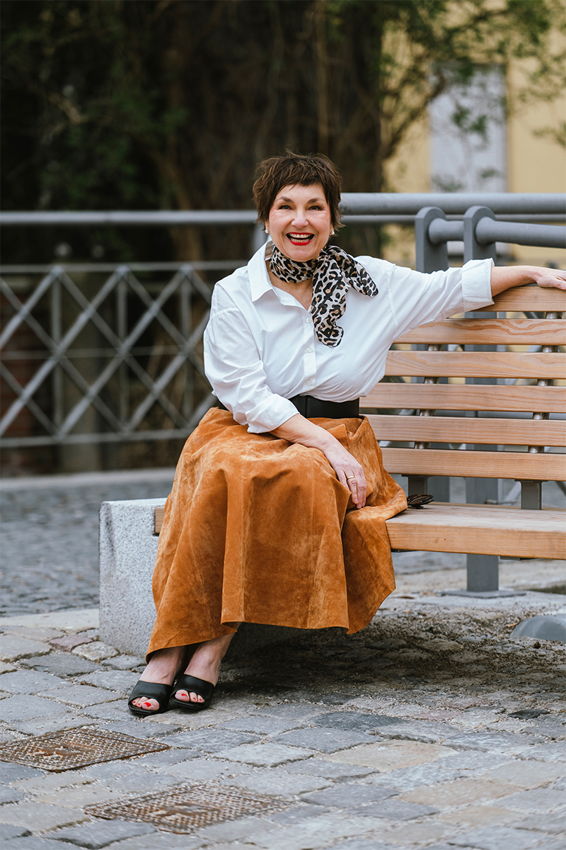 Zumal ich feststelle, dass mir diese Looks durchaus eine neue Sichtbarkeit verleihen. Als würden Menschen – Frauen wie Männer – ihre Augen in dieser wirren, irren, durchgeknallten Zeit gerne auf Outfits ausruhen lassen, die sie ein wenig an eine „gute alte Zeit“ erinnern, wo die Welt (vermeintlich!) noch in Ordnung war.